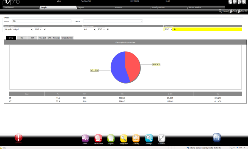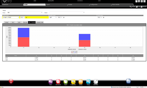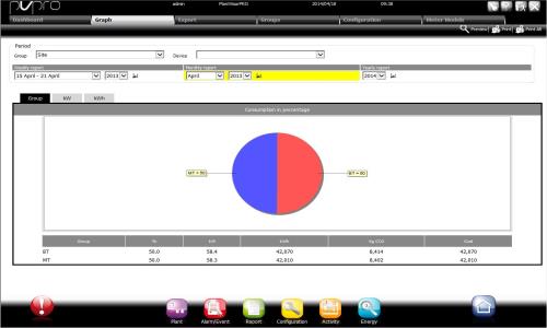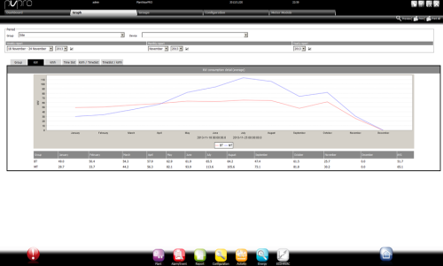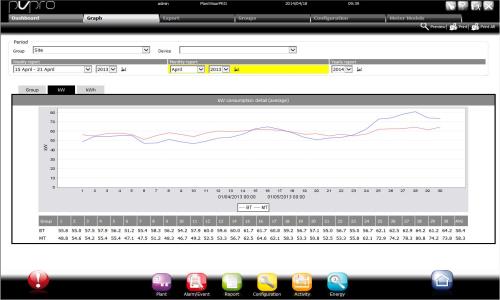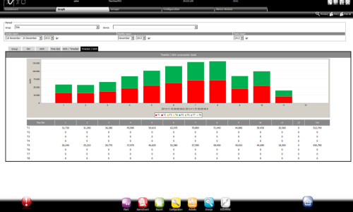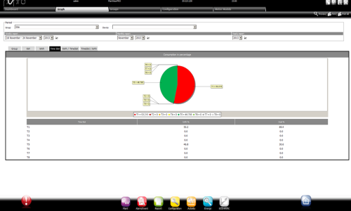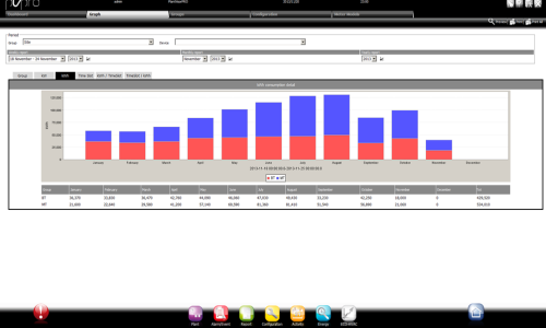 Consumption statistics and time trends can be viewed for a given period in the Graph page.