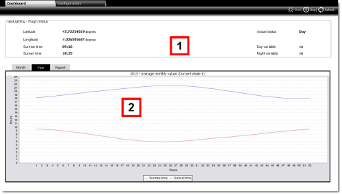 Area with the data calculated by GeoLighting based on the entered latitude and longitude. It includes the following fields: