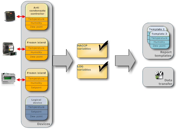 Variables can be recorded based on parameters set by the user (log report) or on read-only parameters based on HACCP regulations (HACCP report).